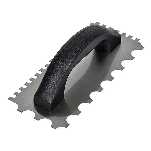 The Wall & Floor Notched Adhesive Trowel with a hard, cold rolled steel blade and a high impact plastic handle, to offer excellent durability.